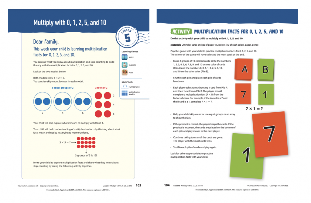 MATH: We will start lesson 5 which really kicks off our multiplication unit. We will be learning how to multiply by 0s, 1s, 2s, 5s, and 10s. Below is the family letter explaining how I teach this lesson and it includes an activity that helps with this skill. If you would like to give your child extra practice with multiplication, this activity would be an excellent option to use.