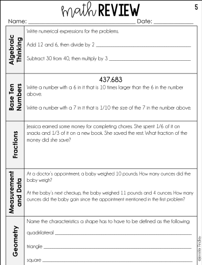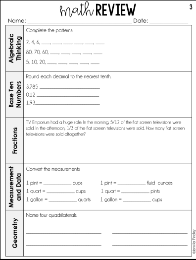 Friday: Math Homework Packet Due